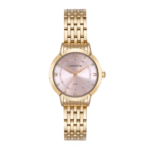 O mostrador rosa e a caixa dourada de 32mm tornam este relógio feminino moderno e delicado ao mesmo tempo.