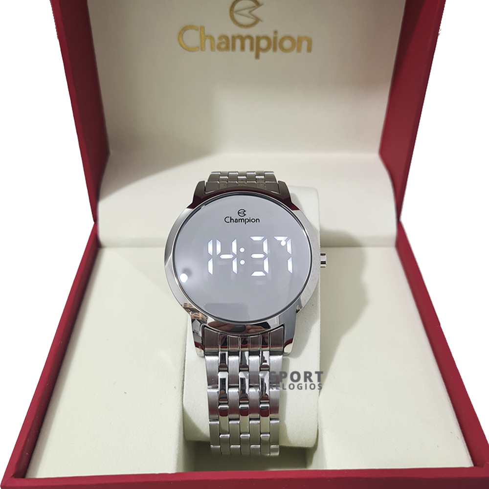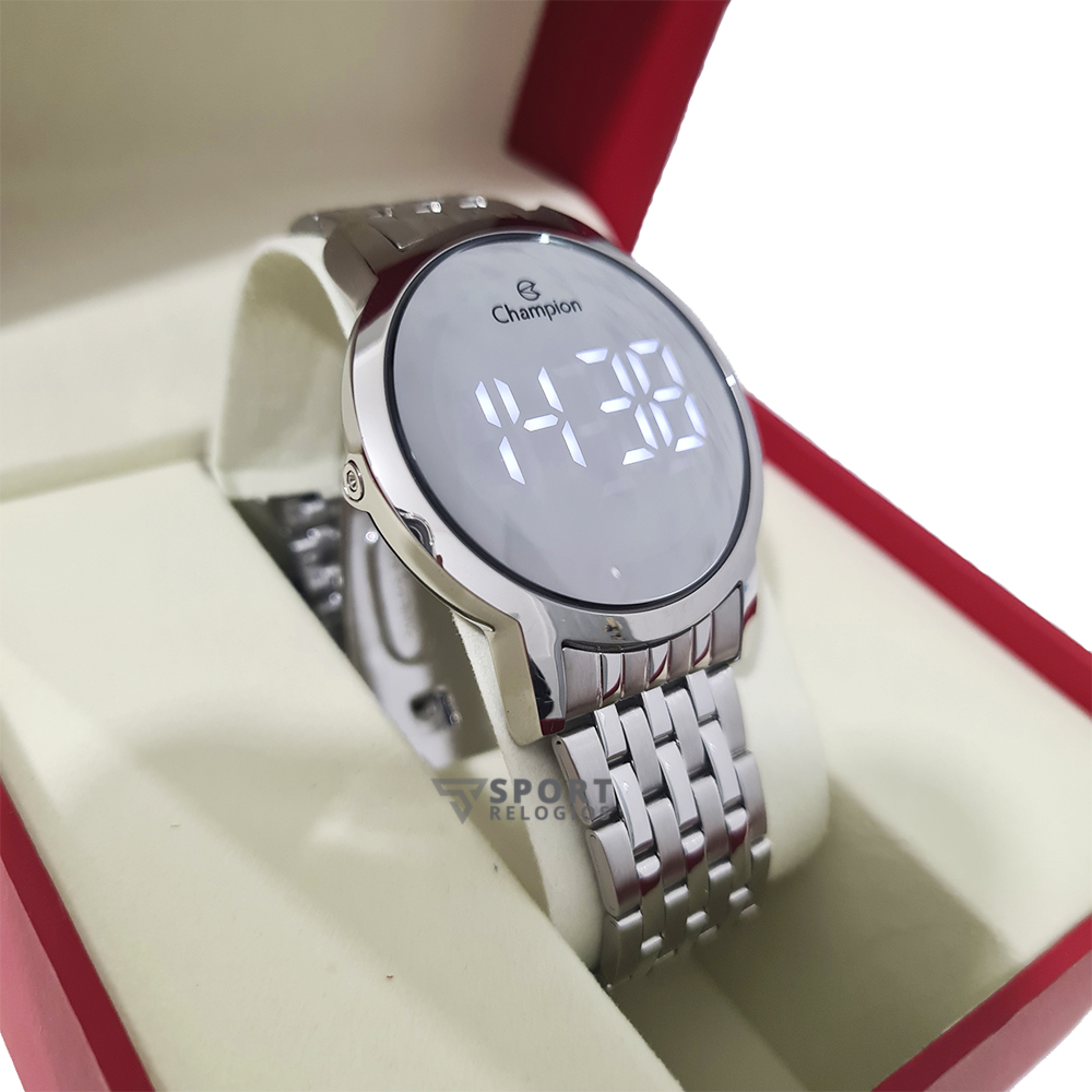 O Champion CH40099Q traz um visual contemporâneo com caixa de 40mm em metal Prateado e mostrador espelhado e leds brancos.