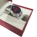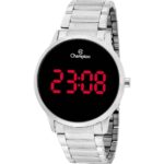 O Champion CH40124T traz um visual contemporâneo com caixa de 40mm em metal Prateado e mostrador preto e leds vermelhos.