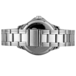 Sua caixa em metal de 4,8 cm de diâmetro oferece ajuste confortável ao pulso. A pulseira de aço conta com fecho de acionamento lateral para fácil ajuste.
