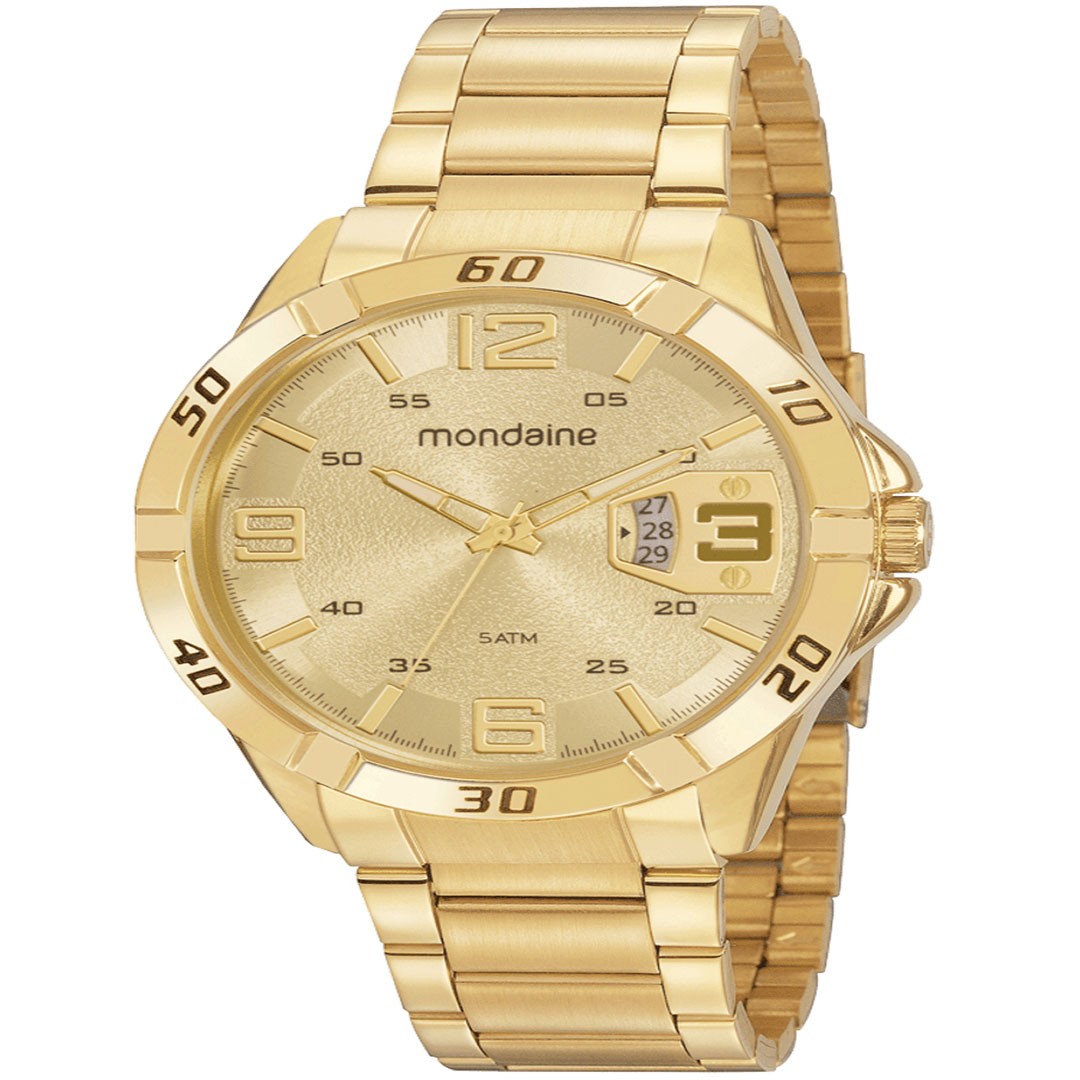 O relógio analógico masculino com calendário apresenta uma folheação dourada e um mostrador texturizado, proporcionando um visual sofisticado. Com uma caixa de 4,8 cm de tamanho, este relógio ajusta-se perfeitamente a todos os tamanhos de pulso.