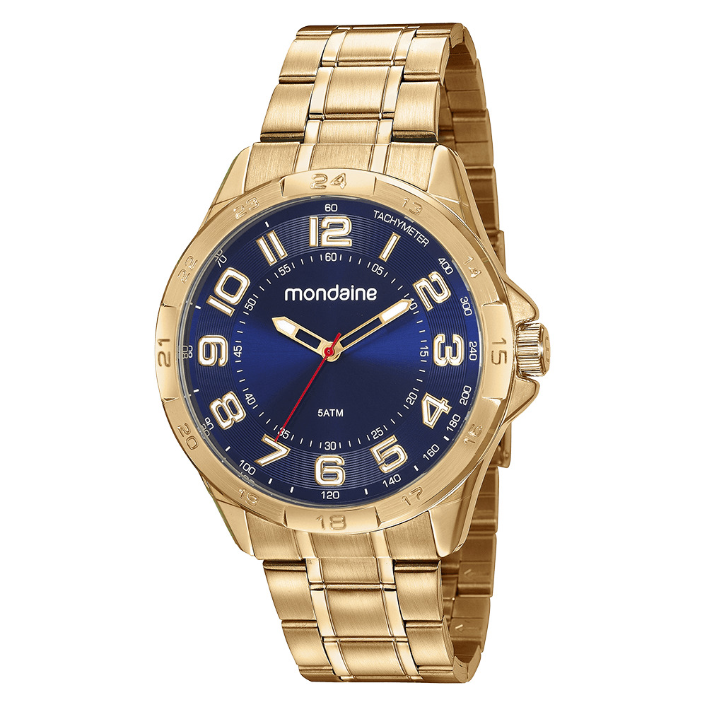Início Relógios Relógio Mondaine Masculino Dourado Fundo Azul 32638GPMVDE3