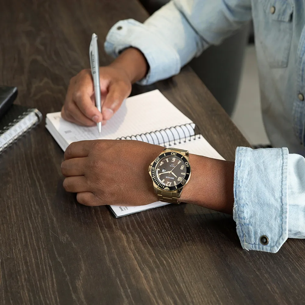Apresentamos o relógio analógico com calendário, uma combinação perfeita de sofisticação e funcionalidade.