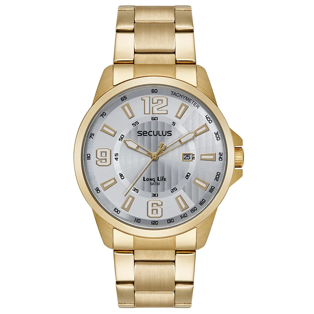 Relógio Seculus Masculino Aço Calendário Dourado 44211GPSVDA3